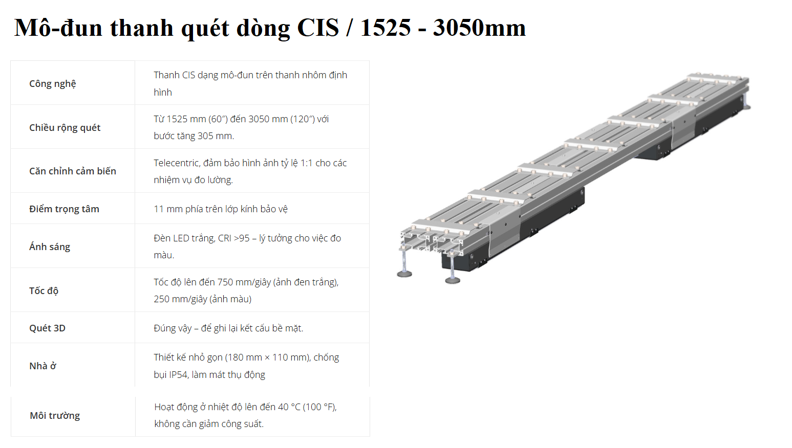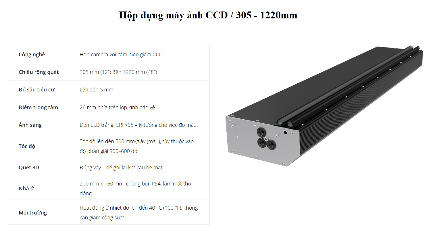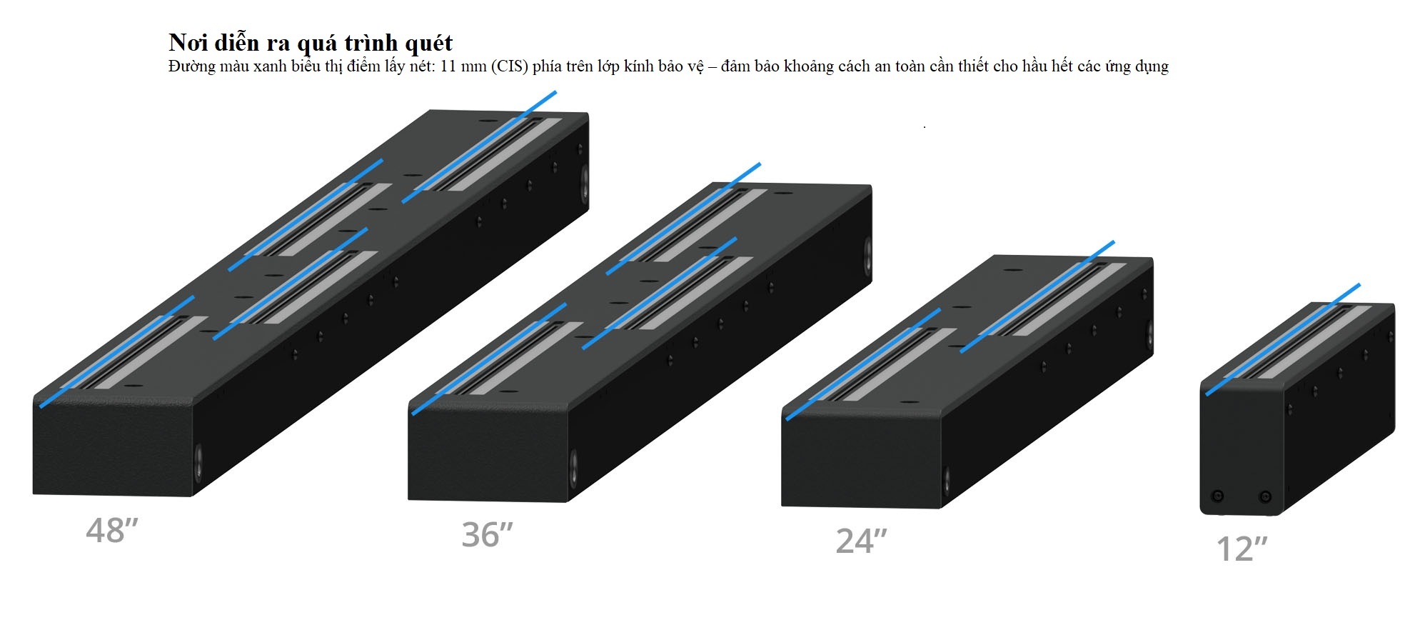 - Kích thước & cảm biến _ Từ 12 đến 120 inch, với công nghệ CIS hoặc CCD – tùy theo nhu cầu của bạn