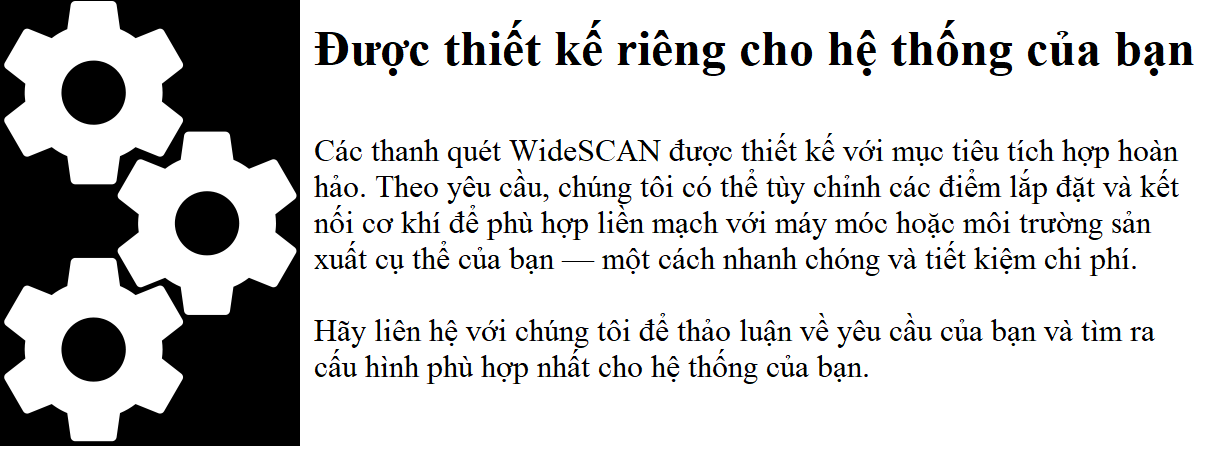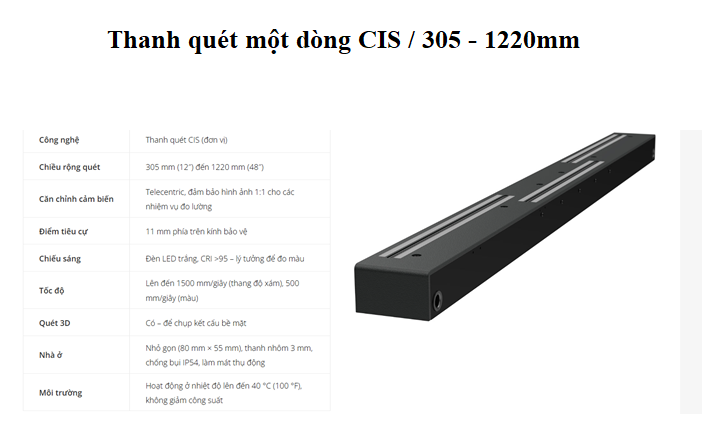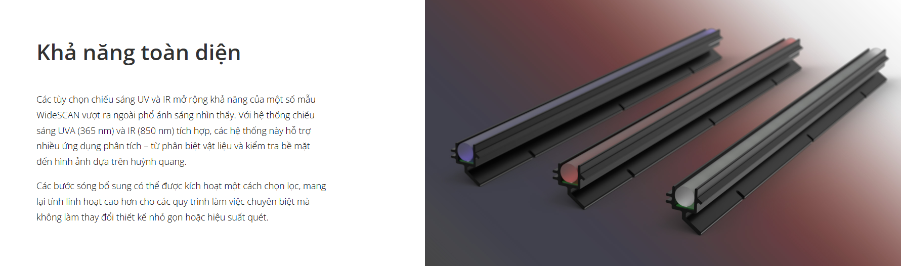 Thanh quét WideSCAN là các thành phần được thiết kế chính xác cho các tác vụ kiểm tra và quét nội tuyến, được thiết kế để tích hợp liền mạch vào các hệ thống tùy chỉnh như dây chuyền sản xuất công nghiệp hoặc máy in một lần. Có sẵn các kích thước từ 12 đến 120 inch và sử dụng công nghệ CIS hoặc CCD, chúng mang lại hiệu suất tốc độ cao, độ phân giải cao trong một thiết kế nhỏ gọn, cắm và chạy—lý tưởng cho việc đảm bảo chất lượng, chụp ảnh và hiệu chuẩn in.